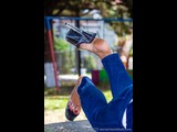 Description: Totally barefoot in the childs park, showing my soles and toes with french pedicure, again a gift from a big fan! |