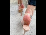 Description: Showing for us her thong heels with white toenails, check out how the toe prints are now in her shoes. so nice! |