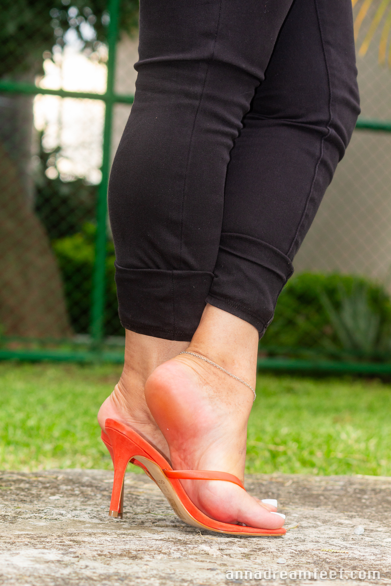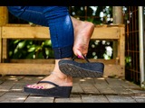 Description: A very hot summer afternoon, perfect time to wear my new thong sandals, a gift from a big fan! Thank you! |