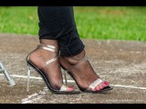 Description: Clear heels with red toenails.... rare shoes..... but always her willingness to show your feet is always appreciated. |