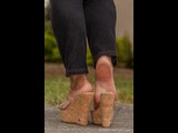 Description: Walking by the park with my cork platforms and mini skirt, part 2 |