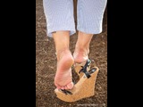 Description: Walking under the shade of the trees in a small forest near home, a nice place to show off my feet in wedges, I hope you like it. |